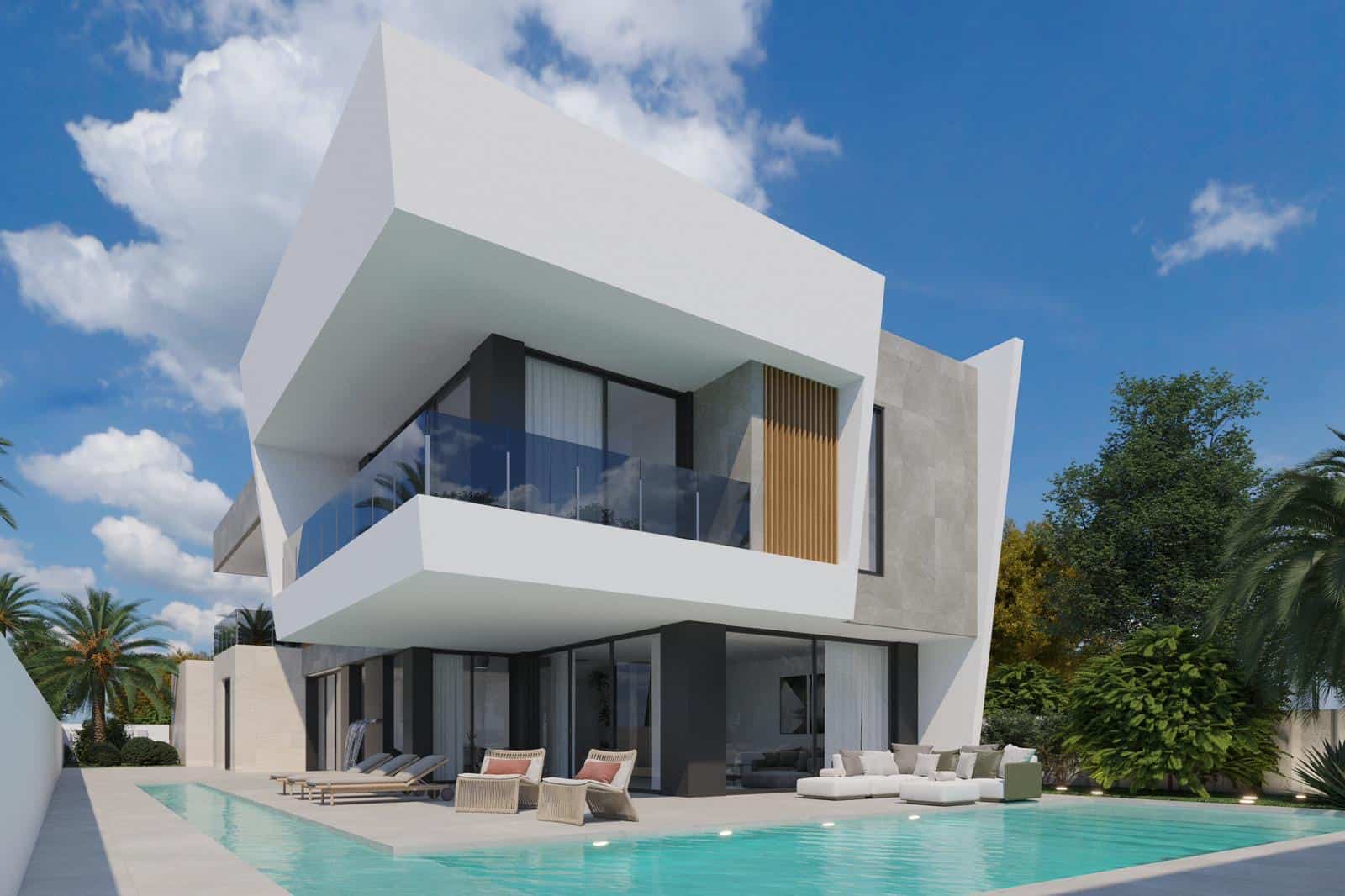 La vivienda, de diseño moderno y líneas limpias, destaca por su arquitectura contemporánea, priorizando la entrada de luz natural y la conexión visual con el entorno exterior.